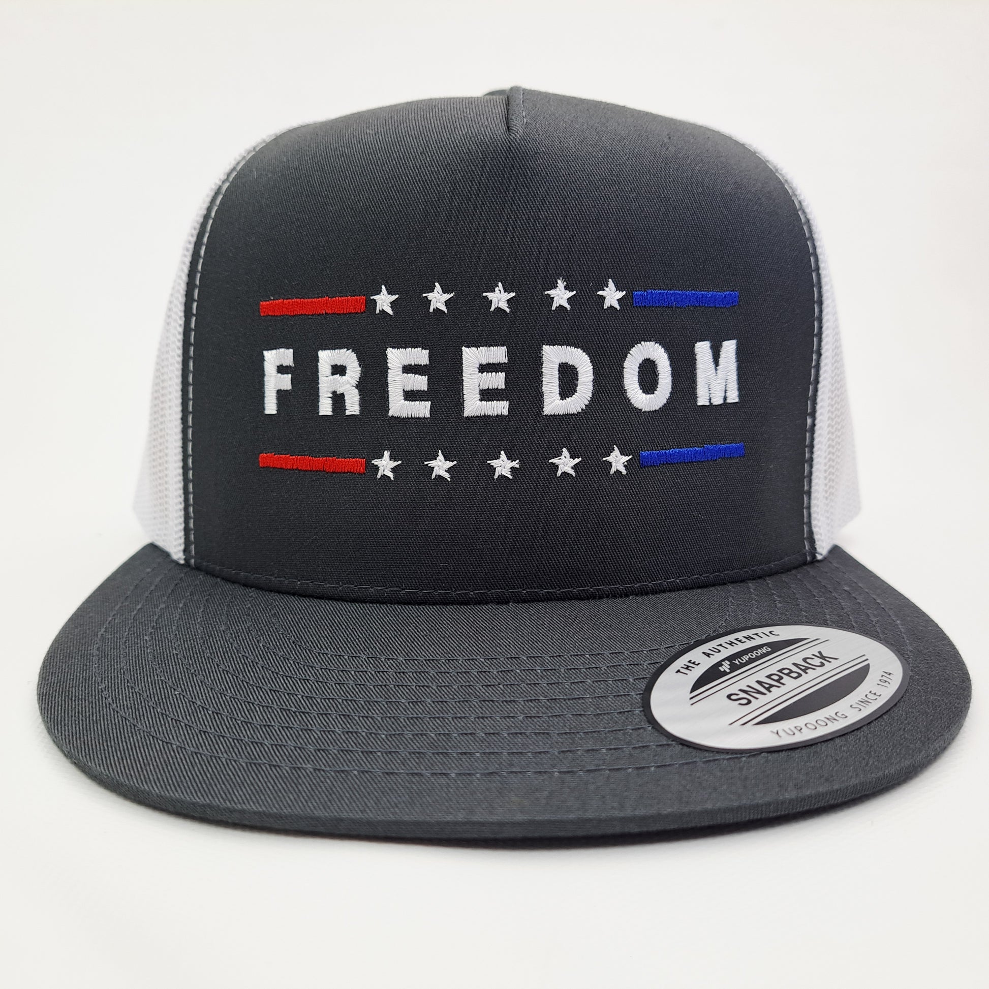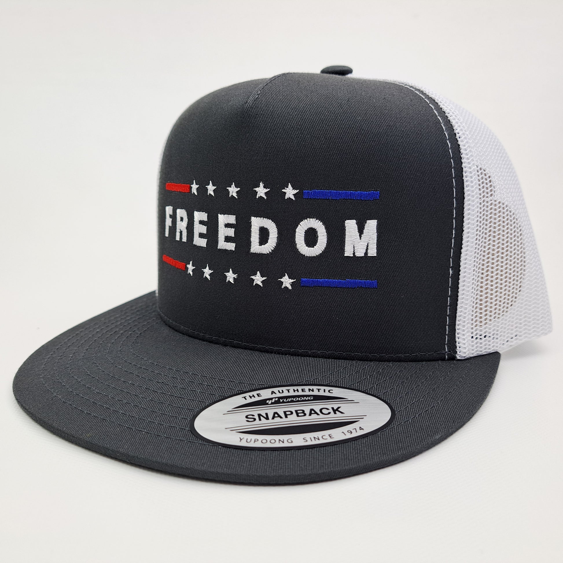 Freedom Charlie Kirk Embroidered Flat Bill Trucker Mesh Snapback Cap Charcoal Gray