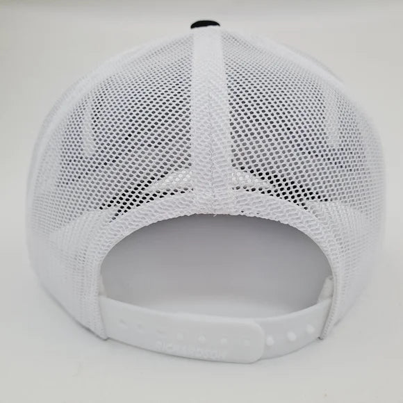 Brand new high-quality embroidered patch on a OTTO Flat Bill Trucker Mesh Snapback Cap Hat Black and white