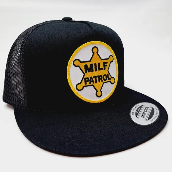 MILF Patrol Embroidered Patch Flat Bill Trucker Mesh Snapback Cap