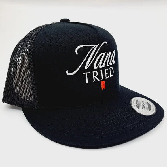 Nana Tried Flat Bill Trucker Mesh Snapback Black