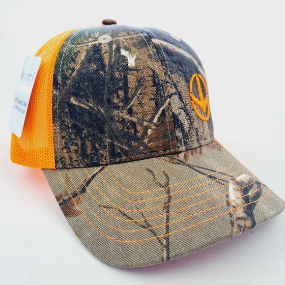 Brand new high-quality embroidered Trucker Mesh Snapback Cap Hat Neon Orange turkey hunting track logo